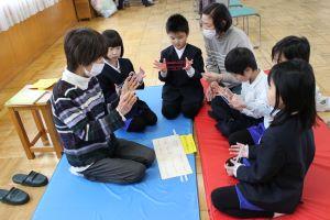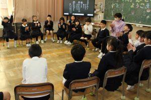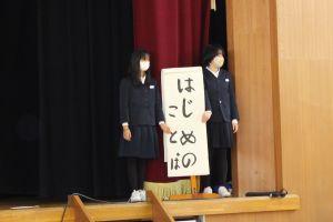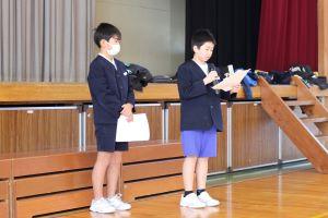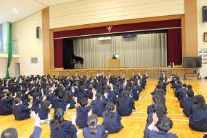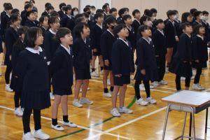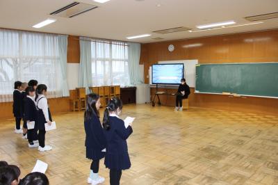 次に、別れの言葉の練習をしました。それぞれのクラスで練習してきた成果を発揮して、どのクラスも大きな声で言葉を言うことができていました。