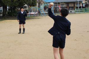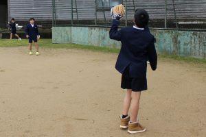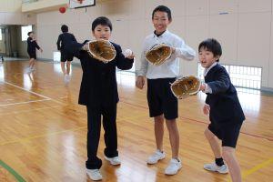 6年生の学童野球経験者の3人にキャッチボールをしてもらいました。