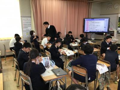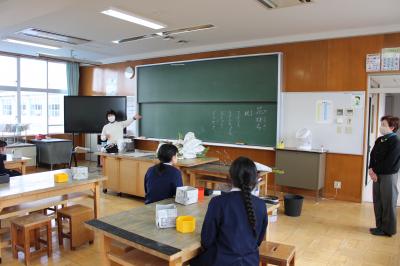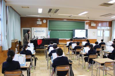 今日、川北中学校の栄養士の中尾先生においでいただき、3年生が食育授業を行いました。