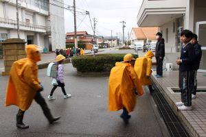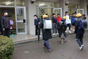 今日は4限後、給食を食べ、大きな荷物を抱え、子供たちは元気に下校しました。