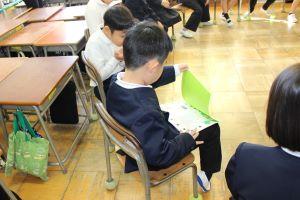 今週は職員室前に展示して、来週から、各学年に貸し出しします。