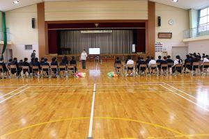 まず最初に、体育館に集まる態度、待つ態度について、褒めました。