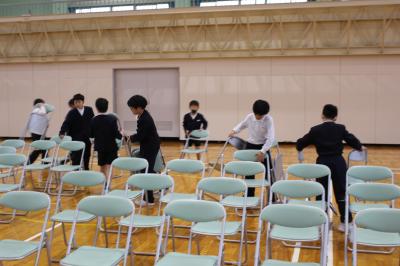まず最初に、卒業式の意味を確認しました。そして、座り方や立ち方や礼の仕方を練習しました。最初は、なかなかそろいませんでしたが、何回か繰り返すうちに、そろってできるようになってきました。