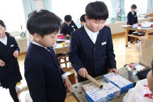 玄関に行くと、4年生が下駄箱の掃除をしていました。
