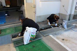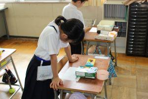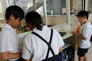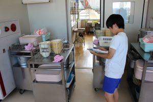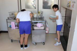 その配膳車の片づけの様子を、給食委員さんがチェックしています。