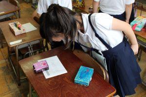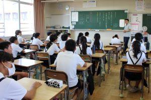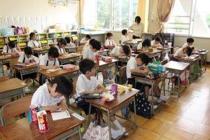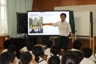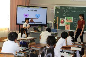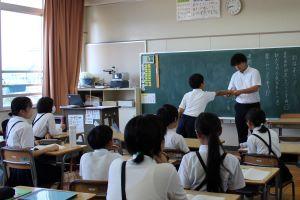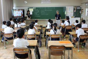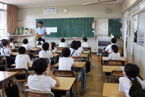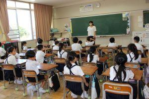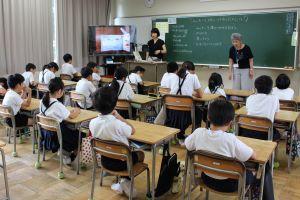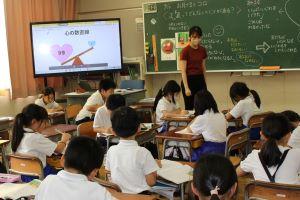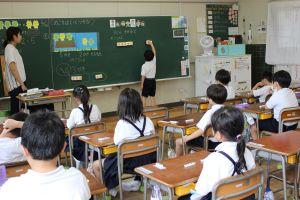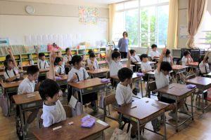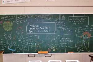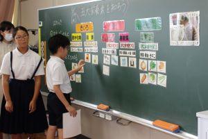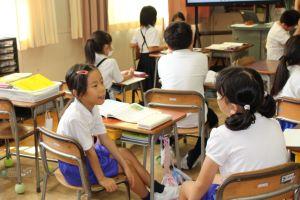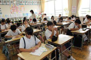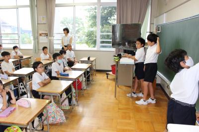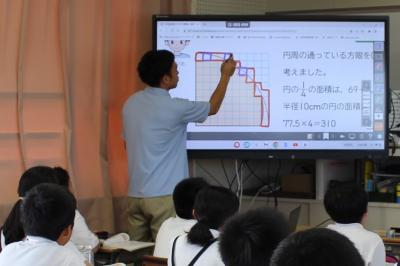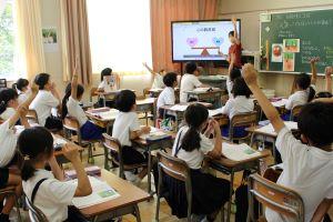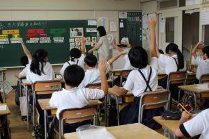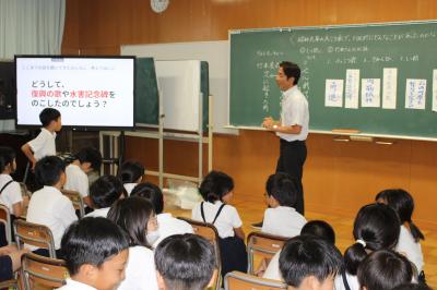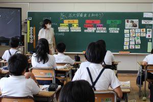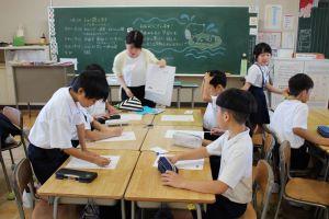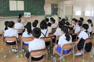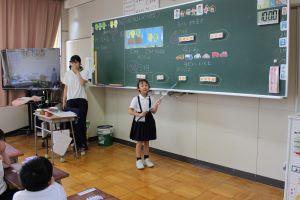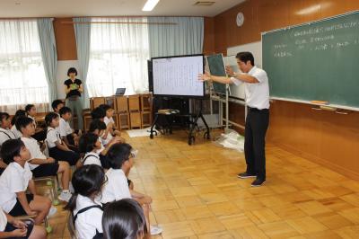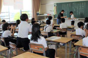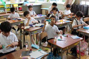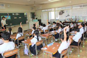 先生の「黒板の前でやってくれる人いますか?」の問いかけに、たくさん手が挙がっています。