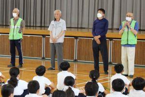 今日の対面式で見守り隊の方のお顔とお名前を覚えて、ぜひ、明日から感謝の気持ちを込めて、元気よく挨拶しましょう
