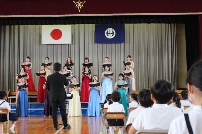 いつも歌っている校歌が、四部合唱になると、こんなに華やかですばらしいものになるのかと感動した様子でした。