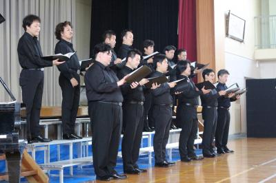 最初に、川北小学校の校歌を四部合唱に編曲したものを聞かせてくださいました。
