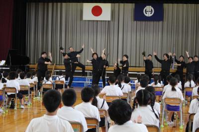 今日、文化庁学校巡回公演として新国立劇場(東京)の方々が川北小学校に来てくださいました。
