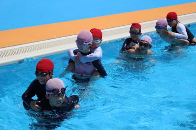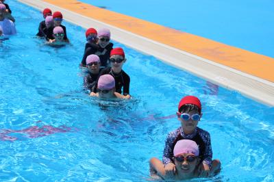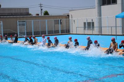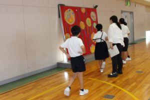 最後に、高学年が引く練習をしました。さすが高学年、どちらも全力で引き合い、なかなか勝負がつきませんでしたが、最後はわずかに赤が引いて、赤が勝ちました。本番はどちらが勝つのか楽しみです。