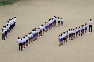 今日は、全校練習で綱引き練習と応援練習をしました。