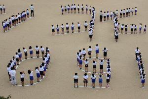 場所の移動をして、赤と白に分かれて、円をつくります。