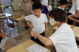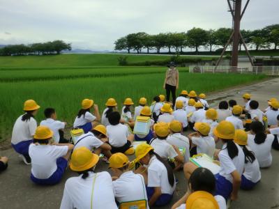 朝からの雨でお天気が心配でしたが、晴れ間をぬって4限目に行いました。