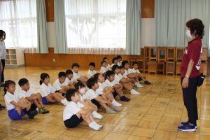 まず、綱引き練習をしました。最初に綱引きで気をつけることや動きの確認をしました。