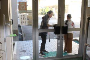 来賓の方をお迎えする机なので、丁寧に拭いています。