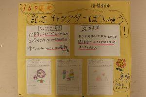 1学期に情報委員会の児童から、金沢市の小学校でキャラクターを作成したという新聞記事を読み、「川北小学校でも150周年のキャラクターを作りたい!」の意見があり、私(校長)も賛成~!