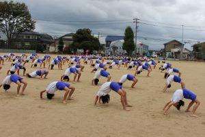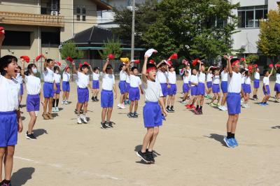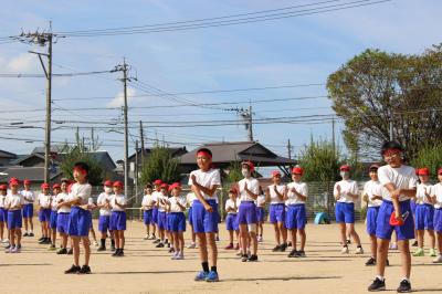 今日は、運動会が2日後に迫り、全校で「表現発表会」を行いました。
