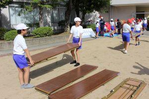 今日は午後から、5,6年生が、明日の運動会の準備をしました。