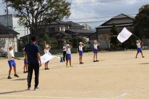 今週は、運動場に出て、実際の場所を確認しながらの練習です。