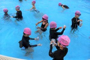 浮かぶ子、もぐる子、泳ぐ子、顔をつける練習をする子・・