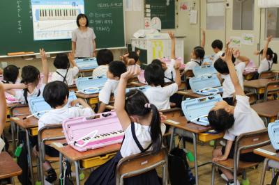 初めての「鍵盤ハーモニカ」の授業に、みんなワクワク!