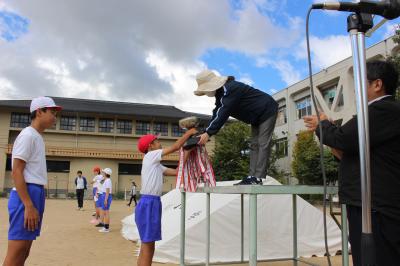今日は、久しぶりに晴れたので、運動場で運動会の開閉会式の練習をしました。