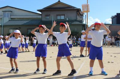 初めての運動会、初めて応援、の1年生も、元気よく「お~っ!」