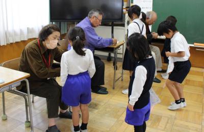 「生活科ボランティア」の方には、1年生に「昔あそび」を教えていただいたり、2年生の地区探検の引率補助をしていただきました。