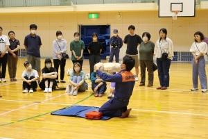 講習会では、消防署川北分署の救急救命士から、心肺蘇生法について教えていただきました。