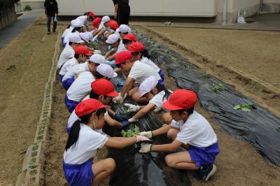今日は1・2年生がさつまいもの苗植えを行いました。