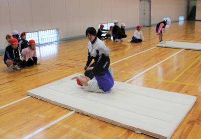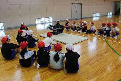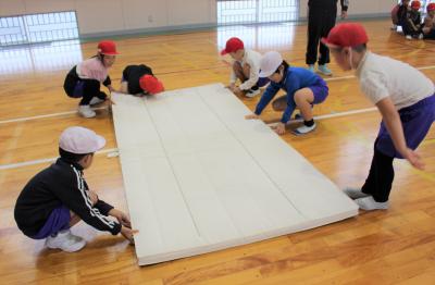 2年生は、体育の授業でマット運動に取り組んでいます。