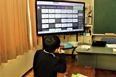 次は、誰とはなそうかな~。(電子黒板で確認)