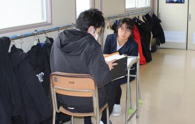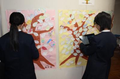 挨拶が終わり校舎に戻ると、運営委員が、「人権の木」の素敵なメッセージを探し、クロムブックで写していました。
