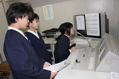 朝の放送が始まりました、放送室を覗きにいくと・・