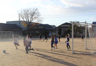 久しぶりの冬の晴れ間で、朝学習が始まるまで、子供たちは元気に運動場で遊んでいました。