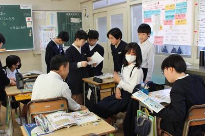 今日の授業では、それぞれが自分の決めた「問い」の解決に向けて、積極的に交流し、考えを広げたり深めたりしていました。