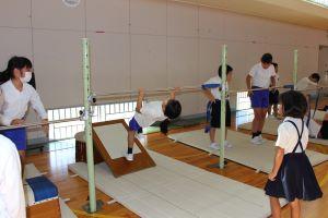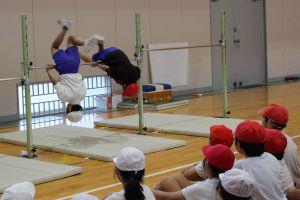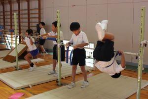 たくさんの技の紹介がありましたが、「けんすい逆上がり」は誰もできる人がいなかったので、先生が登場。