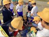 1,2年生のペアで仲よく転がします。頑張れ!