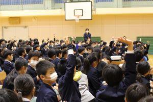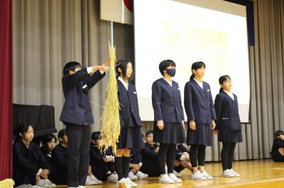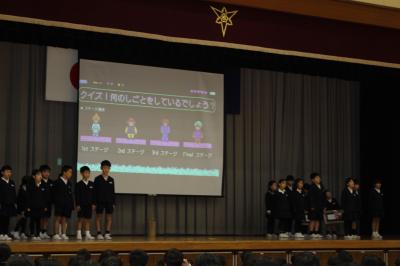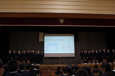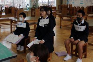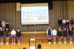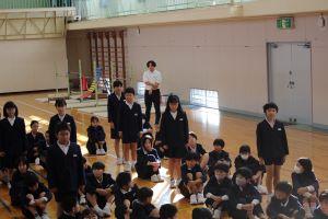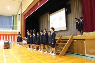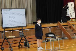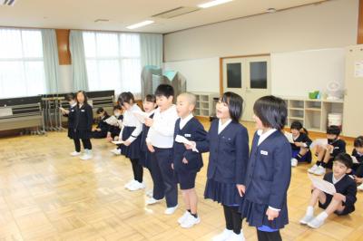 次に、別れの言葉の練習をしました。それぞれのクラスで練習してきた成果を発揮して、どのクラスも大きな声で言葉を言うことができていました。