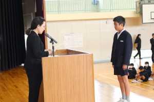 川北小では、図書館貸し出し100冊達成した児童に、「100冊読書」の表彰を行っています。