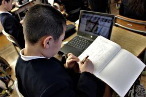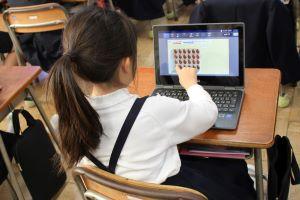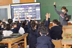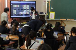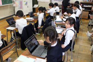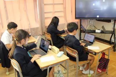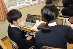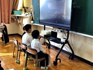 残念ながら、インフルエンザでお休みの児童が多いクラスは、教室からオンラインで参加となりました。