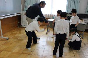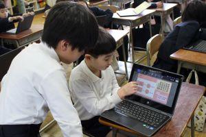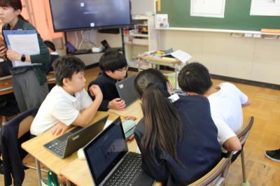 この単元では、ある目的に対して、班で話し合いを重ね、よりよい方法を考えたりする授業です。