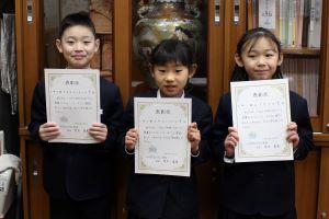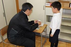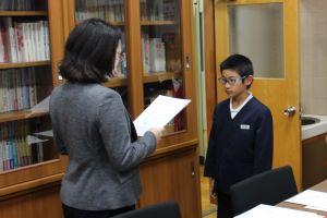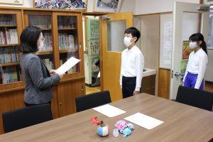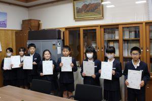 校長室で、一人一人に表彰状を手渡しました。