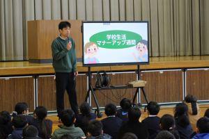 私(校長)の挨拶では、子ども達に「スローガン」を達成するために、2つのことを話しました。