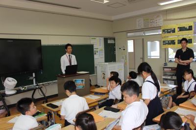 今日は、3年生の総合的な学習の時間にゲストティチャートして、川北町役場の産業経済課の松本さんが来てくださいました。
