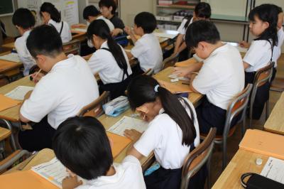 4限目は、非行被害防止講座で、菜の花助産院 植田幸代さんを講師にお招きし、「透明バリアってなんだろう」