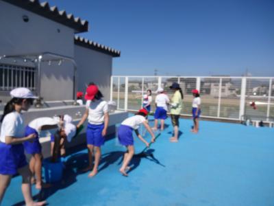 6日(金)5,6年生がプール掃除を行いました。前日は4年生がプール周りを、今日は5,6年生がプールの中を