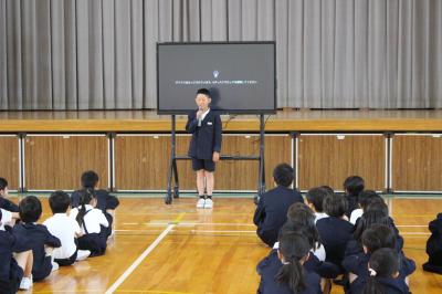 初めての全校行事に少し緊張していた様子の1年生も、紹介が終わるころには笑顔を見せていました。
