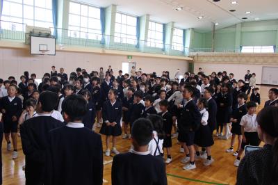 5月14日(水)2限目に体育館で「1年生を迎える会」が開かれました。この会は、運営委員会が中心となって企画・運営を行い、全校児童で1年生をあたたかく迎えました。